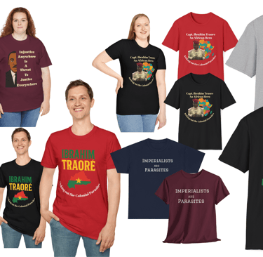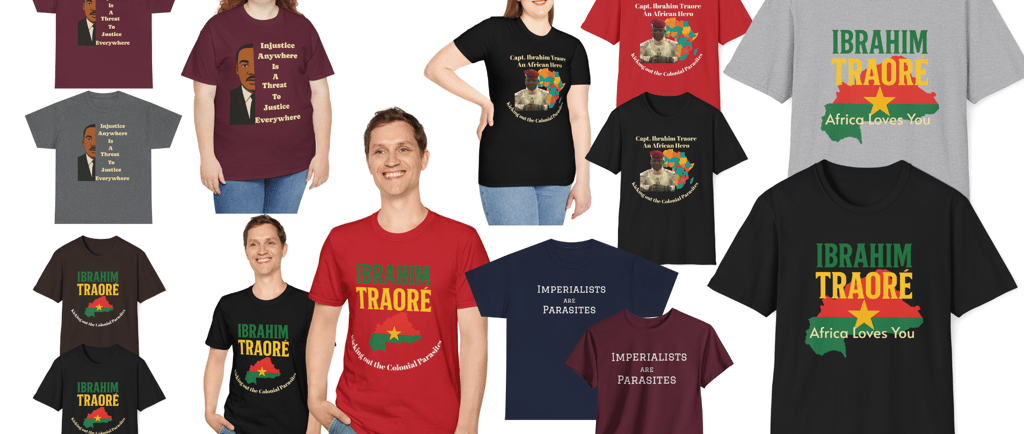 T-shirts are democratic by nature. Anyone can wear one, and with the right design, they can turn heads, spark conversations, and inspire movements. In contexts of political oppression or international solidarity—whether it's the enduring struggle of the Palestinian people or the rise of Pan-African consciousness championed by leaders like Captain Ibrahim Traoré of Burkina Faso—T-shirts transform individuals into visible agents of resistance.